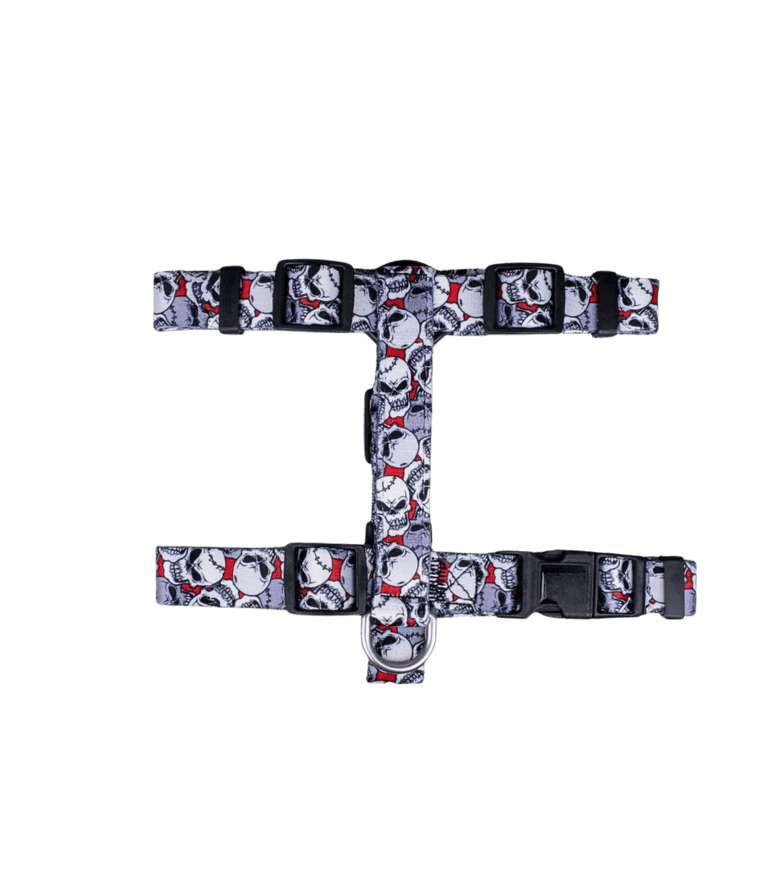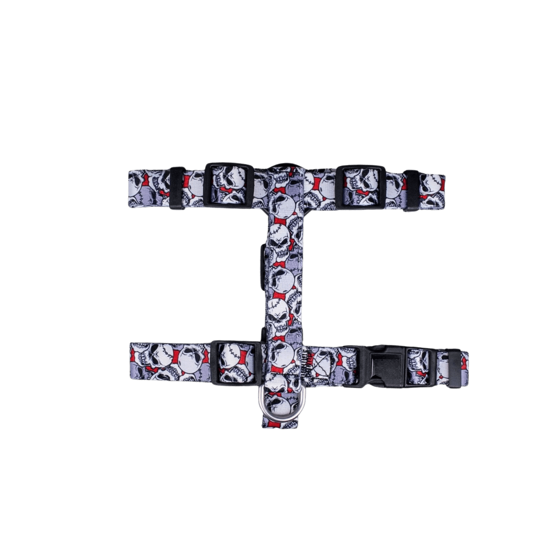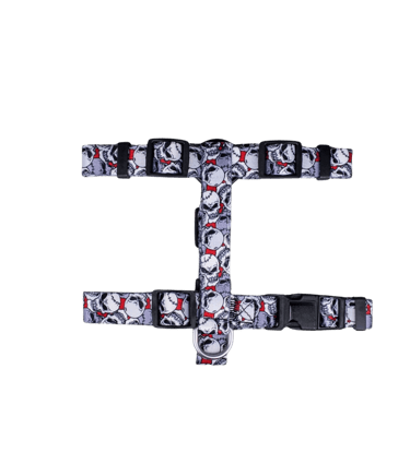 Cada arnés está fabricado con material tejido reciclado, reforzado con piezas metálicas de zamak y costuras resistentes que aseguran una durabilidad excepcional.